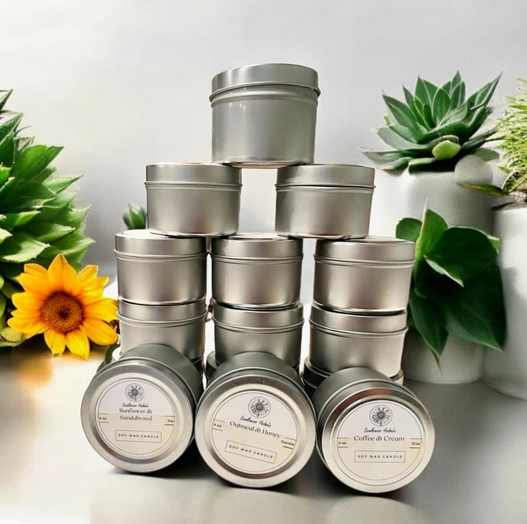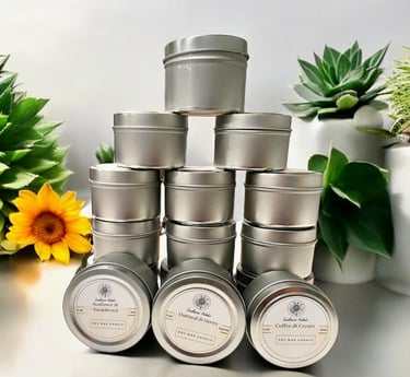 Enjoy the aroma of these hand-poured herbal soy scented candles in convenient 4 oz tins. Pair your favorite handcrafted soap with it's matching fragrance candle for the ultimate bath experience.